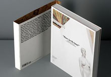 (二)裝訂工藝:頁數(shù)少的畫冊一般訂裝。頁數(shù)多膠裝,高檔樣本/宣傳畫冊精裝。