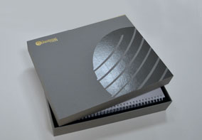 工藝:四色印刷,燙銀,不銹鋼活頁夾,對(duì)裱成型等